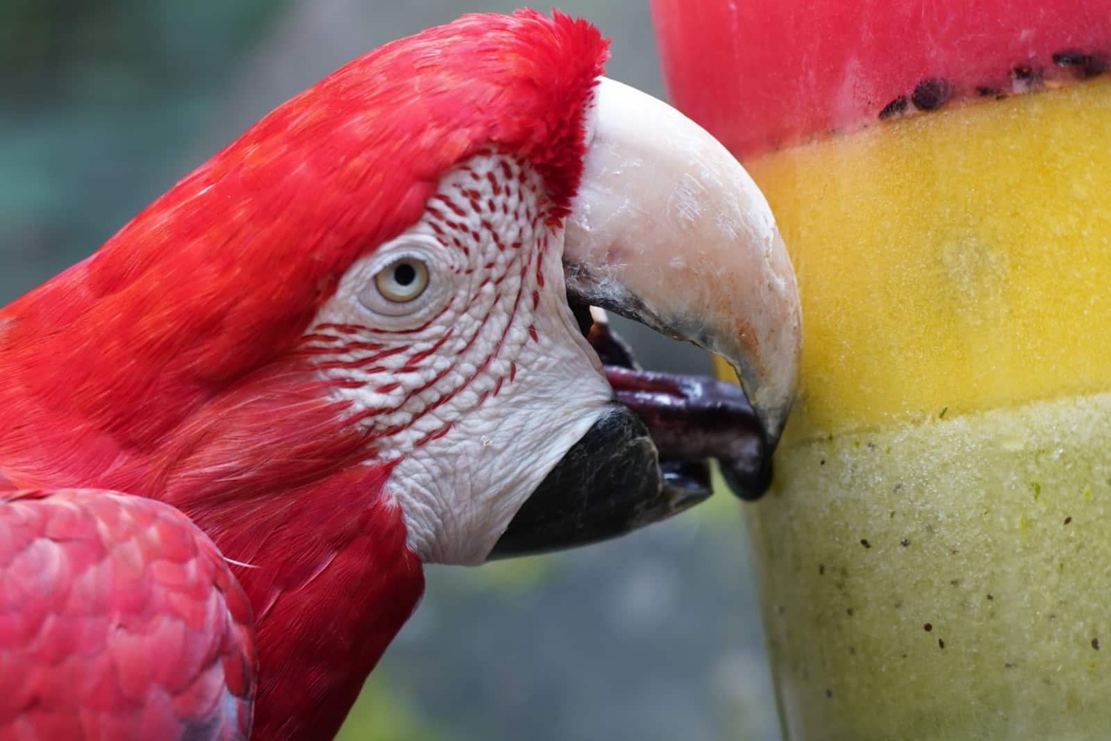 Blocos de gelo com frutas fazem parte de ação especial no Viveiro das Araras