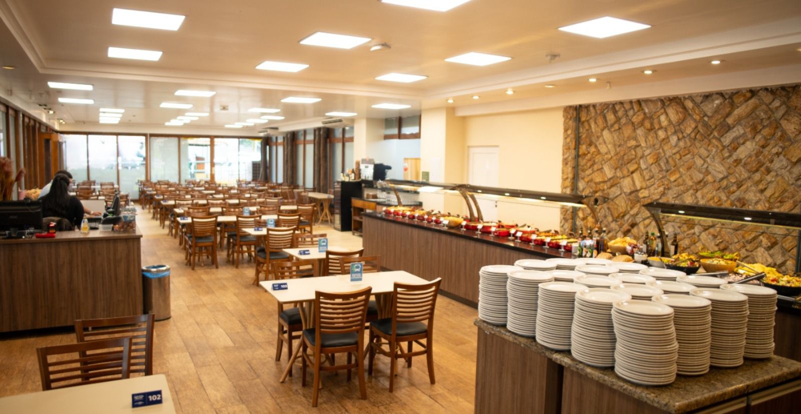Em um ambiente mais exclusivo e acolhedor, o serviço de bufê livre celebra a diversidade da gastronomia do país, com seleção de saladas, pratos quentes e sobremesas típicas à la carte. Um dos destaques é o combo de sobremesas “Trio Brasilidade”, em que o visitante pode escolher porções de três doces tradicionais brasileiros, como: pudim, quindim, brigadeiro, cocada etc.